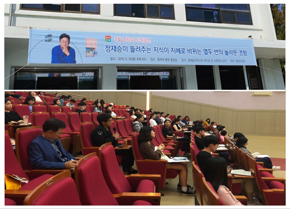 정재승 교수는 카이스트(KAIST) 바이오 및 뇌공학과 교수이자 뇌과학자로 ‘알쓸신잡’, ‘차이나는 클래스’ 등 방송에 출연해 대중들에게 잘 알려져서 학생뿐만 아니라 일반 시민들의 참여도 많았으며 강연 후에는 사인회 및 포토타임이 진행되어 큰 호응을 얻었습니다.